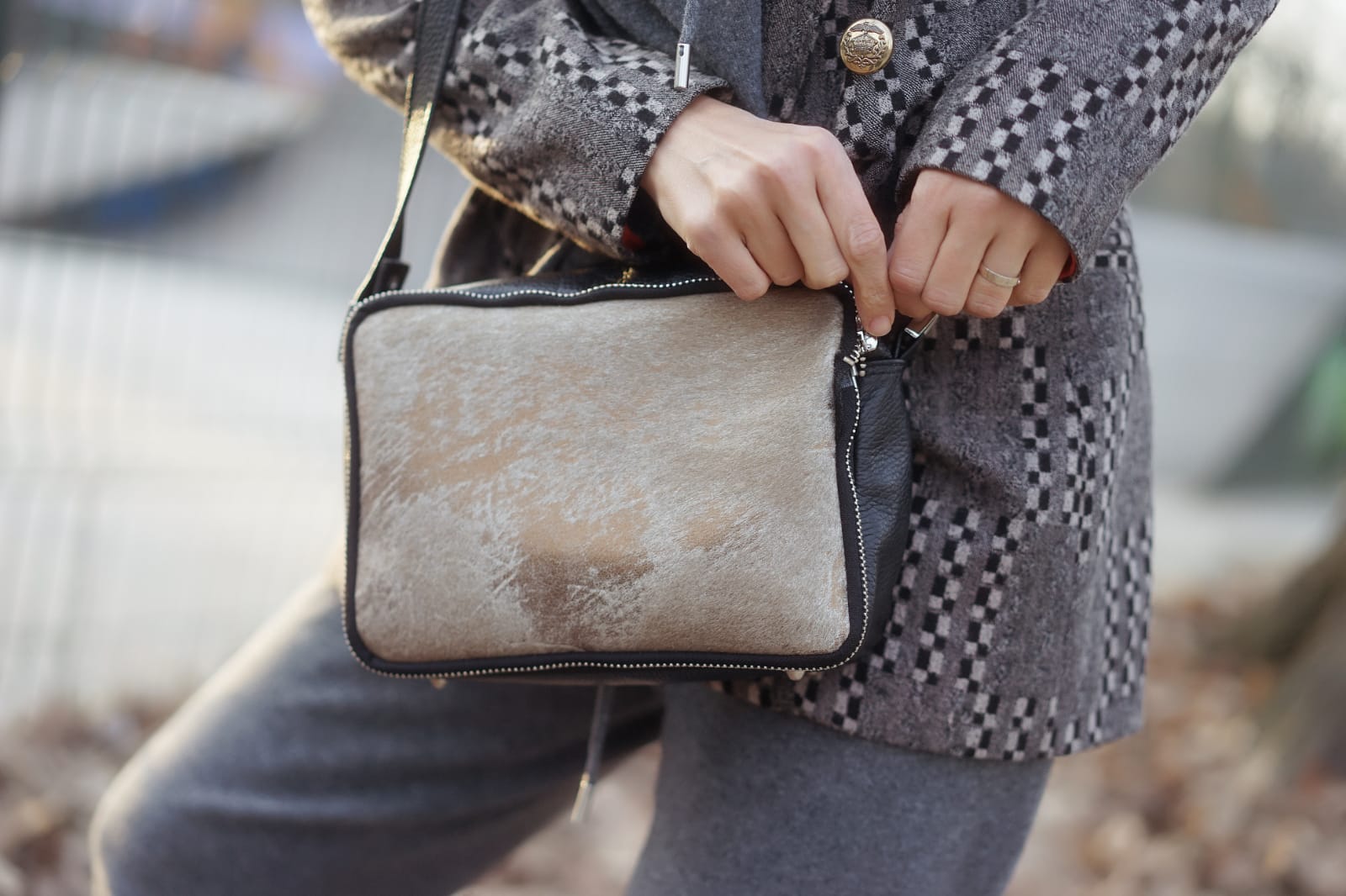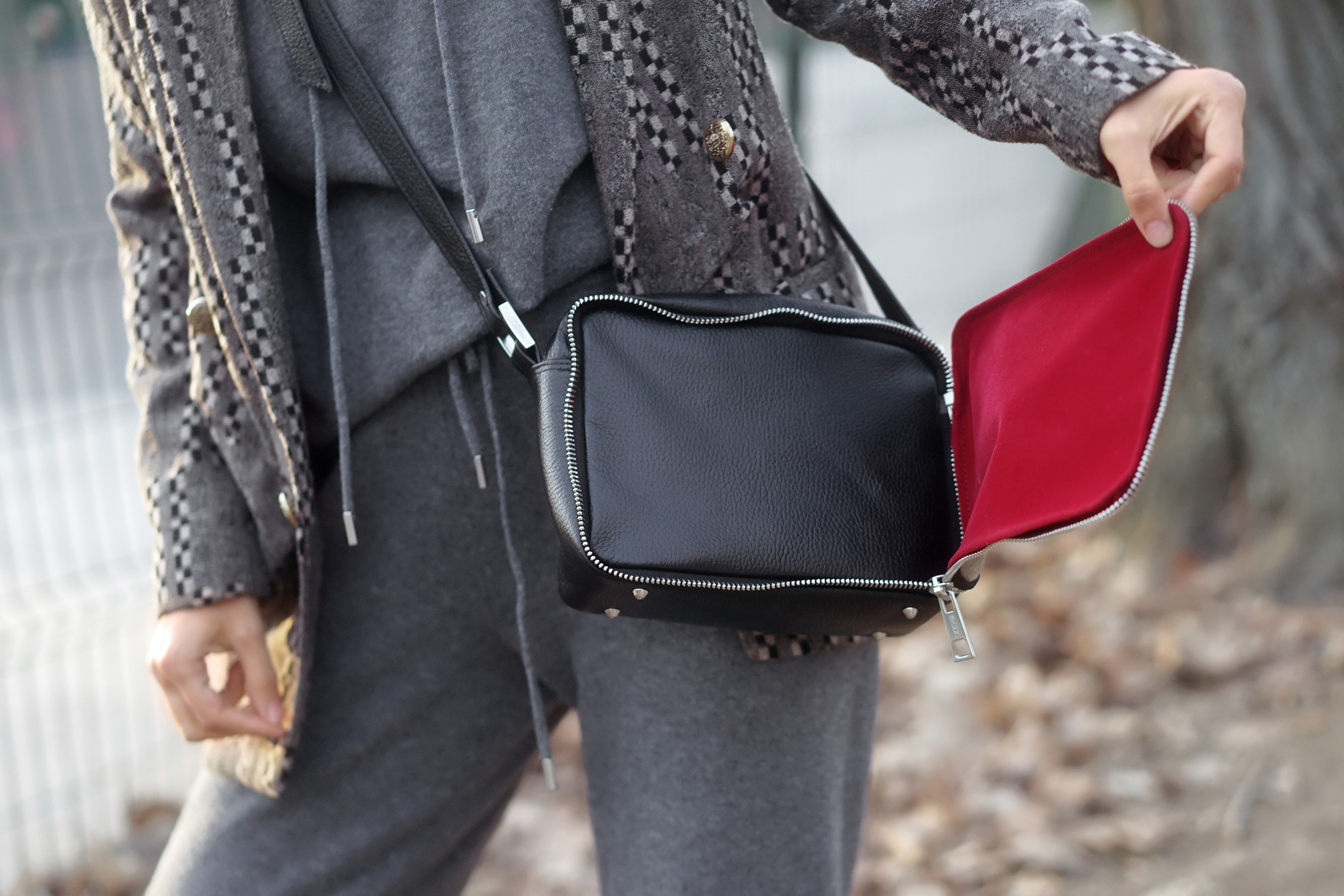In poze port: sacou Venera Arapu, hanorac si pantaloni Zara, geanta cu buzunare detasabile Moon, incaltaminte Adidas.