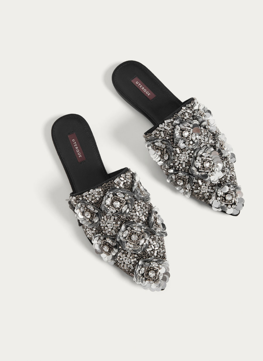 Velvet, satin shoes with sparkly appliques or just special ones